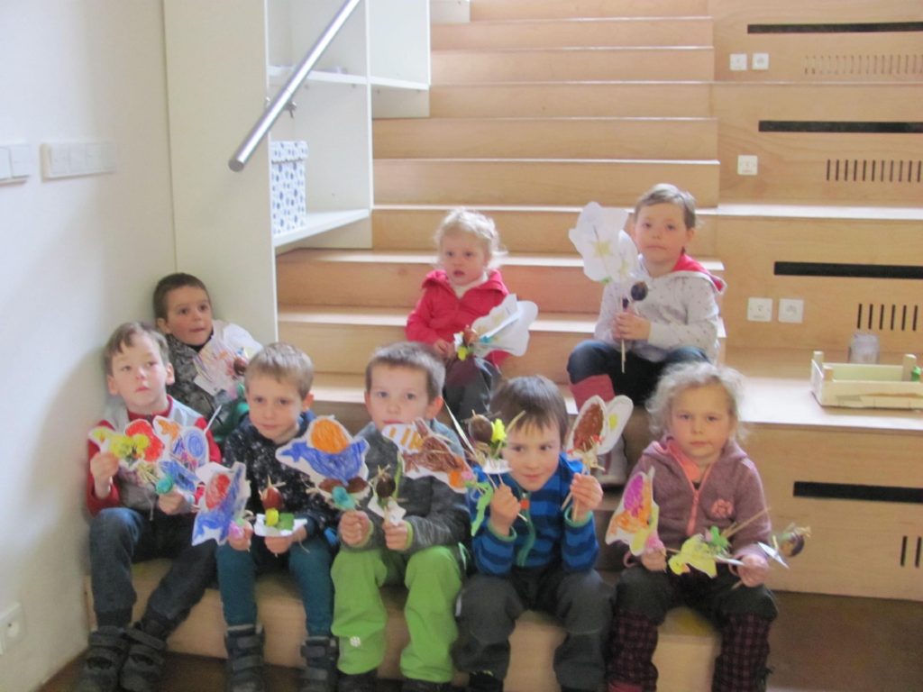 Pak už nás čekalo malování vyfouklých vajíček. To vám byla práce! Aby z nich byly opravdové kraslice, posypali jsme je třpytkami. Při malování jsme si zopakovali všechny koledy, aby kluci mohli za týden „vyšupat“ maminky i kamarádky a vykoledovali košík plný vařených nebo čokoládových vajíček. Nejdřív ale ještě s tatínkem uplést pomlázku, z vrbových ocásků…